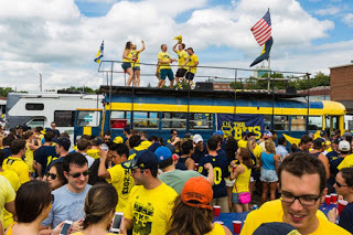 From Liz: Re: tailgating, I was the founder and owner /marketing director for a brewery that was located exactly one mile down Stadium Blvd. from The Stadium (a.k.a he Big House) where Michigan plays football. On 12 noon kickoff Saturdays, I’d be at the brewery early, for people to pick up their pre-ordered kegs or cases of or beer. And when I say early I mean six or six-thirty a.m. because these folks took their tailgating seriously. I would then try and visit the various tents and parties where our beer was being served. A lot of tailgating in Ann Arbor occurs on the lawn of Pioneer High School, which is across the street from the Big House, which is John Harbaugh’s alma mater (he’s head coach of the Baltimore Ravens). My kids all attended there and played sports so I helped organize and run an athletic fundraising event honoring John and his brother Jim who’d just been hired as Michigan’s each coach. I made sure to get Desiree a signed football—a little bribe so she’d write with me!