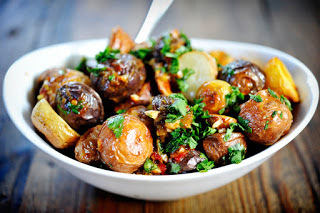 A tailgate party is a social event held on and around the open tailgate of a vehicle. Tailgating, which primarily takes place in the United States and Canada, often involves consuming alcoholic beverages and grilling food. Tailgate parties occur in the parking lots at stadiums and arenas, before and occasionally after games and concerts. People attending such a party are said to be 'tailgating'. Many people participate even if their vehicles do not have tailgates. Tailgate parties also involve people bringing their own alcoholic beverages, barbecues, food etc. which is sampled and shared among fans attending the tailgate. Tailgates are intended to be non-commercial events, so selling items to the fans is frowned upon. Tailgating is often seen as a critical part of the sports experience in the United States. Because many American sports venues are surrounded by large parking lots, tailgating often takes place right outside stadium and arena entrances. You want dishes that work well hot or cold and this one, Chipotle and Lime Roasted Potatoes, really appeals. It’s great hot or warm or room temperature and the dressing is addictive.