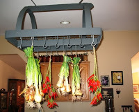 Potato must dry before storingMy sister moved into a house that had a pots and pans rack in the ceiling. She didn't want it so I snagged it with an entirely different idea in mind. This will come in so handy next summer when we have garlic to dry. I hung a few peppers and the last harvested onions. I like it!So...we'll be clearing the fields in the weeks to come and starting all over