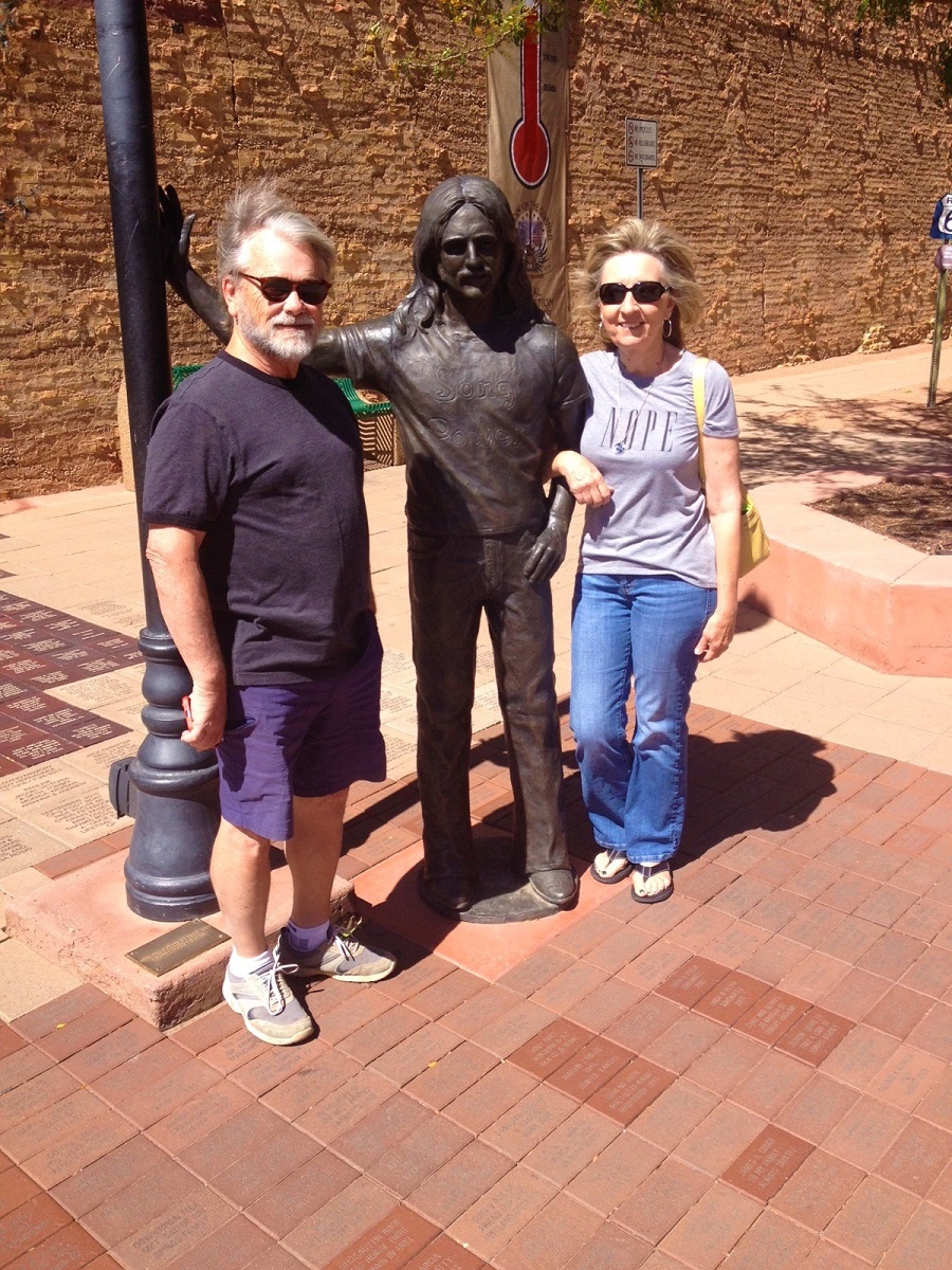 Standin' on the corner...FDW and I went to Winslow for the day to visit friends who leave the Ranch for half the year. We had lunch and of course had to stand on the corner with Glenn Frey.