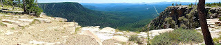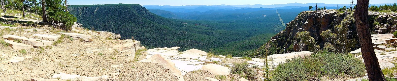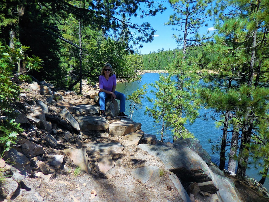 On top of the worldA few days ago, we drove the 300 road which is a dirt road that runs along the Mogollon Rim. (pronounced mug-e-own) This mountain road, not much more than a path in some spots, puts you at the top of the world. Our drive began at the turn off for Woods Canyon Lake and ended at highway 87. There are a few lakes along the way and lots of signs to warn you to watch for animals. We checked out one of the lakes, but I’m