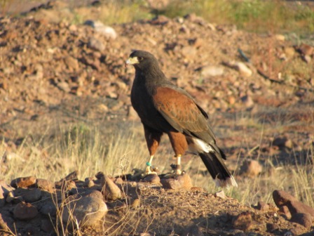 On a beautiful fall afternoon, just outside of Socorro, New Mexico, we witness the ancient battle between hunter and prey. This hunter, weighing in at under three pounds, is a Harris hawk named Etta.