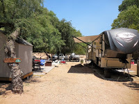 The RV life has ups and downs. The "big RV", as our granddaughter calls it, isn't even a year old. We've had some problems with it since day one...heater, refrigerator, leaking pipes, badly installed trim and odds and ends. The leak under the sink ruined the wood of the center island and has to be replaced. When we took it to the dealer in February, they couldn't complete the repairs because the parts ordered were wrong. We were not happy, and we expressed our displeasure firm enough that we got a free dinner on them. Not a total loss.