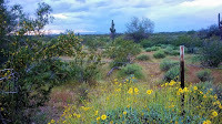 Desert across the street from son's homeBack to dog sitting. While son, daughter-in-law, and granddaughter are on a Catalina Cruise, we are staying at their home. I intended to use it as an intensive four days of writing...no Ranch activities to distract. I got sick the first night with some kind of uncomfortable virus and couldn't even think about writing. My head was killing me and so was my stomach. Two days were totally shot. At least I'm better and even got out of the house for a bit yesterday. If you have to be in the desert, this is the time of year to do it. With all the rain we've had, it's really green.
