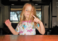 Sadi selfieSadi Belle, our precious granddaughter, spent a couple of nights with us at the RV park and luckily it was sunny and of course fun. She is such a clever three-and-a-half-year-old. She knows how to operate my camera. The self-portrait was another way to do a selfie. She set the camera on a table, pushed the button, and then backed up and posed. With the digital delay it worked! One day, we headed over the Mogollon Rim to the touristy town of Show Low to deliver my books to a store that wants to sell them. Nice, huh? But we had to turn around part way there. Forest Lake was a blizzard and the truck does not handle well in snow. Bummer.