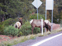 Elk along the waymiles on the rental car, but they learned Arizona was not what they expected. We showed them Tonto National Monument, Roosevelt Dam, Salt River, Prescott, Williams, Mogollon Rim, Jerome, and the Grand Canyon.