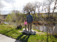 Papa and Sadi in town by streamMy latest release is a romantic suspense set in a small town in Austria at the base of the Alps. I've been to the Alps and they are awesome, but I happen to think our Rockies are just as fabulous. This week we've been in a small town that although is a little farther than the base of the Rockies, is close enough that you can see them.