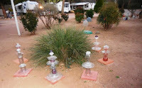 Yard art at the RV ParkI like to give pointers on living cheap…living cheap and having fun. Recycling has taken on a broader meaning in recent years. Stores specializing in used items are springing up everywhere. They’re getting really classy, too. Have you been to Goodwill lately? Sure not the same stores I rummaged through as a teen. There’s a St. Vincent in Payson