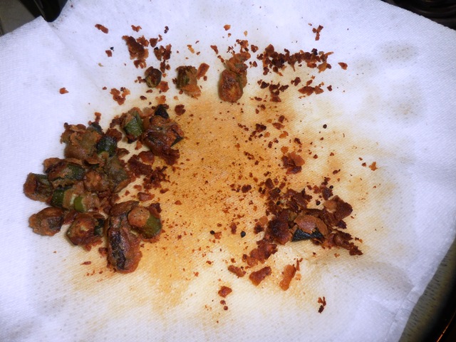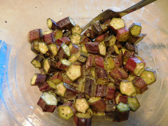 I can eat nearly all of it!and eat as it comes. The only way I really enjoy okra is fried:Cut into inch to half inch pieces