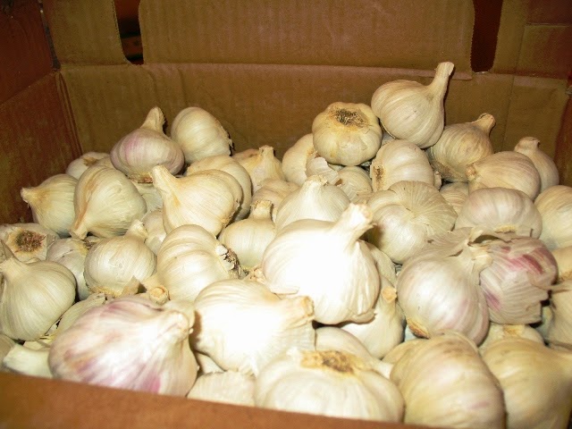 Breaking apart 500 pounds of garlic has consumed us for two days - two boxes down and seven more to go. Sticking those little cloves into the ground will also be time intensive. Then they're covered in mulch and we wait for spring. I tested one variety while separating the cloves. Wow, as hot as our peppers. I never dreamed there were so many varieties with so many different tastes.