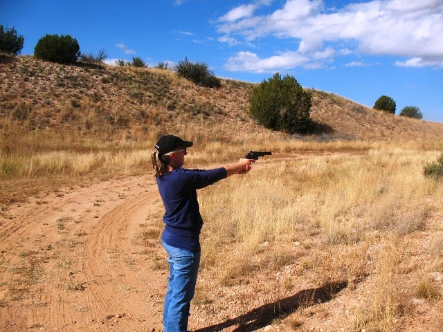 Last week, my son took me shooting. I'm not a gun person, never even held a gun. The trouble is I write about murder, some of which involves guns, and I decided it was time I had personal experience firing a gun.I was nervous. What if my hand jerked and I shot something I shouldn't? What if my aversion to guns got me so scared I couldn't pull the trigger? This research was one of those chores I knew I had to do, but wasn't sure I'd enjoy.