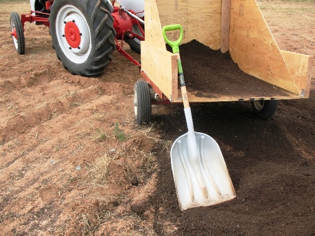 Sadi and Christie get a ridehas to be prepared. We bought a used trailer that Lance replaced the wood on for hauling compost. Sadi and Christie got a ride before using it for the intended use. For the last two days, Frank and Lance have spread compost on the tilled rows...eight rows, three hundred feet long each. Day three tomorrow would've completed the task, but the rains came last night. Now we wait for a dry out . Then another tilling, then when the ground temp drops to 50 degrees we'll begin planting. It could take a couple of weeks to get it all in the ground. We're planting ten varieties this first year to see which do the best and which varieties are the most marketable.
