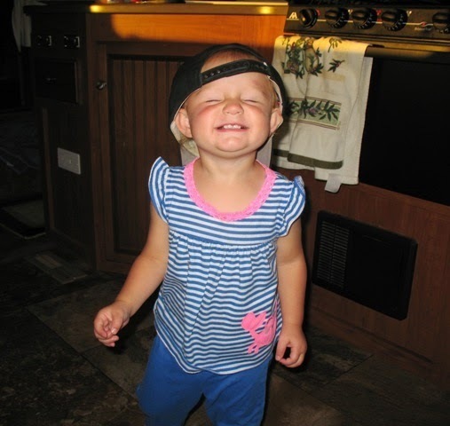 Sadi clowning in Grand Pa Pa's hat
