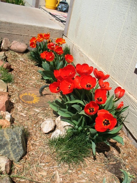Sun in the morning, hail at night.I thought about tucking my sweaters away in the drawers. After all, we have bright flowers blooming out front. I got my field working jeans off the back shelf. And that's all it took. Last night we got hail, and snow and rain - all in the time span of a couple of hours. And this morning I awoke to an inch of snow on the ground.