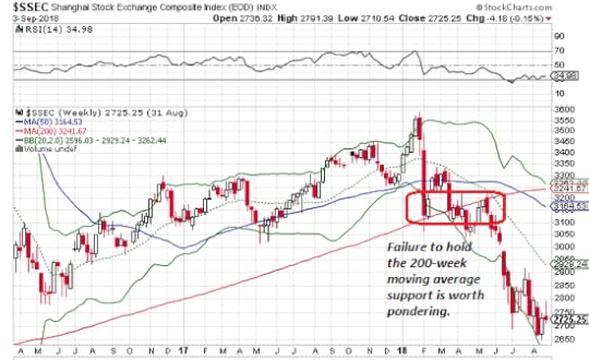 A complete meltdown, right? More specifically, a four-month battle to cling to the key technical support of the 200-week moving average (the red line). Once the support finally broke, the index crashed.