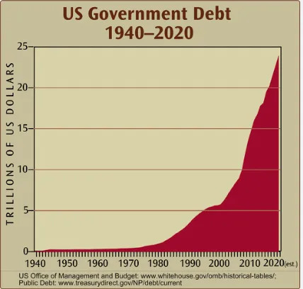 Unrestrained federal debt is the Original Sin. Yielding to the temptation to create and disburse trillions to special interests and industries has resulted in the Fall of the U.S. Constitutional Republic. This calamity is visually expressed by the following chart.