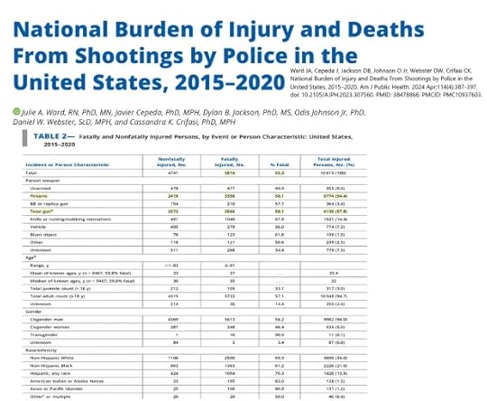 “A total of 1769 people were injured annually in shootings by police, 55% fatally. When a shooting injury occurr...