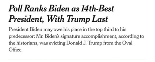 Hark! We are informed this President’s Day by The New York Times that a poll out of the University of Houston, led by one prof of poly-sci named (get this name) Brandon Rottinghaus, ranks “Joe Biden” at No. 14, way above average among the forty-six demi-gods elected to run the US government since 1789. It’s a helluva good bit of news for a nation in need of reassurance in these dark ...