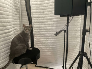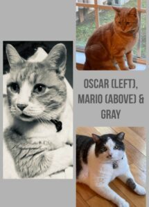 Schmidt the cat is a gray Tabby, less snuggly than Noodle, but still gets as