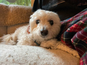 I have two pets, and they’re both rescues. Noodle is a Maltese/Poodle mix and totally addicted to people.