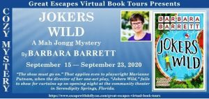 Jokers Wild, the sixth book in her “Mah Jongg Mystery” series, features four friends who play mah jongg together and share otherwise in each other’s lives. None of the four is based on an actual person. Each is an amalgamation of several mah jongg friends with a lot of Barbara’s imagination thrown in for good measure. The four will continue to appear in future books in the series.