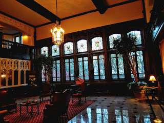 Full of marble floors, carved wainscoting, leaded and stained glass, and lovely chandeliers, it was a delight to spend three days there. Especially with two Starbucks, one candy shop, a towering monument,