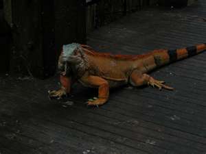When I looked up I got an unexpected surprise. There was a large Iguana lizard hovering over the front part of my house. "Wow" was the only word I could come up with at that time. I never imagined that an exotic lizard would be relaxing outside my house. I walked inside to find a house full of women. My fiancé was there, her mother, her sister, and her sister's roommate. I asked them if they noticed an Iguana outside the house. Of course non off them noticed it.