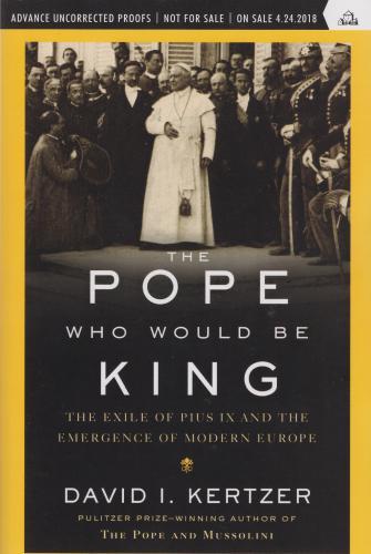 Publishers Weekly reviews The Pope Who Would Be King: "Kertzer, who won the Pulitzer Prize for his biography of Pope Pius XI (The Pope and Mussolini), expertly captures the tension of a deeply devout population, loyal to their church but receptive to the stirrings of both liberalism and nationalism. When Giovanni Mastai Meretti was unexpectedly elected pope in 1846, throngs of adoring Romans heralded his rise, convinced that the humble and fair-minded archbishop of Spoleto would loosen the screws of theocracy in the Papal States and usher in a golden era for Italy. The first months of Pius IX’s rule seemed to bear out this vision, but before long political upheaval forced him to flee—and after his return, chastened and mistrustful of democracy, “[t]he pope’s embrace of a medieval vision of society could not have been clearer.” At the end of his papacy, Pius IX presided over “the death throes of the popes’ thousand-year kingdom... the death of a doctrine of faith that had a huge impact on the course of Western civilization.” From the arch-conservative secretary of state of the Papal States, Giacomo Antonelli (who oversaw daily affairs), to the avatar of Italian independence, Giuseppe Mazzini (a leading dissident fighting against clerical rule and for a united Italy), Kertzer brings to life a cast of characters whose divergent voices arose from a new Europe. A consummate storyteller, Kertzer blends academic rigor with fluid, energetic prose, and the result will satisfy specialists while entertaining those who might otherwise expect to be bored stiff by a volume of church history. (Apr.)"