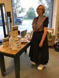 The fun began this week. Last Friday I got to leave my lonely office and travel to four different bookstores to meet with some of my readers. I was very excited to present my newest book, “Waves of Mercy” to them. The novel is based on the true story of the Dutch immigrants who left the Netherlands in 1846 to settle the town of Holland in the wilderness of Western Michigan. I even bought a new outfit to wear for the occasion. It’s a typical Dutch costume from the province of Zuid Beveland, and is the type of dress that the characters in my book might have worn. What do you think?