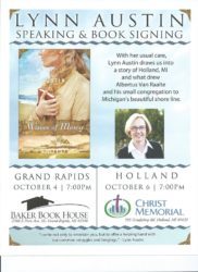Two days later, on Thursday, October 6, I’ll be giving the same presentation in Holland at 7:00 PM at Christ Memorial Church (595 Graafschap Rd., Holland). Maybe some of you are descendants of those first settlers? I would love to meet you. “Waves of Mercy” will be available for purchase at both of those places.