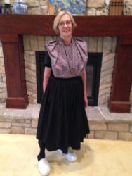 So, I have to say that while it was awkward at first, I’m growing fond of this Dutch dress. You can’t tell from the picture but there’s a voluminous petticoat underneath the skirt, and a black apron on top of it. Twenty yards of cloth is very effective at hiding any and every flaw in my figure. But don’t try to drive a car in wooden shoes…just saying.