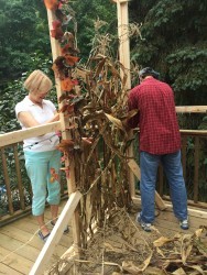 This past week I had the privilege of celebrating the Jewish Festival of Succoth with some of my Jewish friends and family members. Also known as the Feast of Booths or Tabernacles, it commemorates God’s provision in the wilderness for 40 years when His people lived in temporary shelters, protected by His Clouds of Glory. To prepare for the week-long festival, we built a temporary structure or sukkah using leaves and other natural materials. We covered it with a roof made of branches that allowed us to see the night sky above. Here is the work in progress on our back deck.