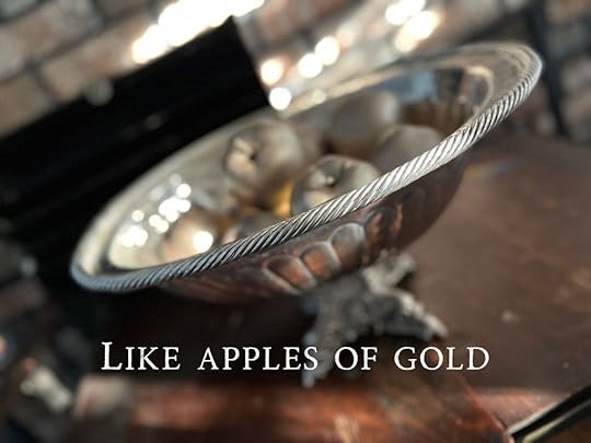 The vivid imagery of this verse has been dancing in my thoughts the last few months, so much so that I was on the lookout for some artificial apples to spray paint gold and something silver to place them in.