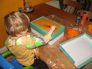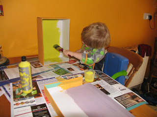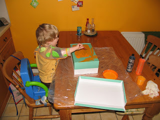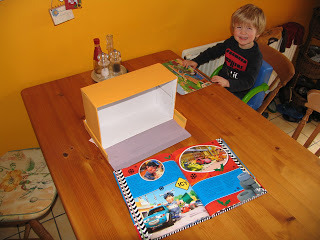 It really is that simple! And - I think you'll agree - pretty effective. It wasn't my idea; it wasn't even my shoe-box. Both belonged to Sarah, and quite how the combination of a Roary-mad toddler and a shoe container came together as they did, I'm not quite sure. But once she'd had the inspiration, it was down to us for the perspiration and I was as keen to put it into action as Charlie. As you can see, he did his bit. And he didn't make too much mess. (I did!) But it was all good fun.