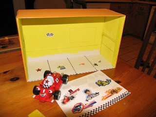 Moving swiftly along, get those paints out and transform your shoe-box into something that might just, in a day or two, look like a garage for a set of racing cars.