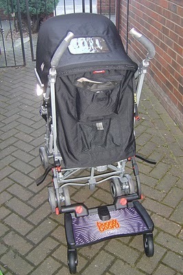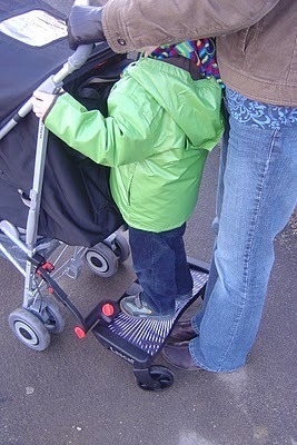 First today, this transport of delight: the Lascal Maxi buggy board, which is now Charlie's preferred mode of transport when we're out with Eloise.