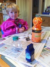 What you will need is a couple of empty plastic juice bottles (mine are courtesy of a Mr Asda who I believe might have a corner shop in your neck of the woods) but anything similar would do.