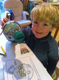 Finally, print off a picture of the intrepid Octonauts (Peso, Quarsi and Captain Barnacles), colour in and insert into the bottle top... Et voilà!