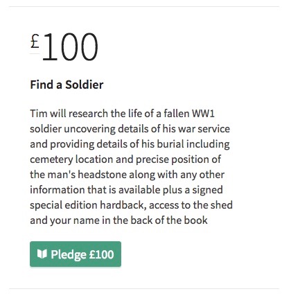 One of the pledge levels uses some of the knowledge and skills I've gained in five years of research to offer my services 'finding a soldier': that is, researching the life, service and final resting place of someone, perhaps a family member, who served and died in the Great War.