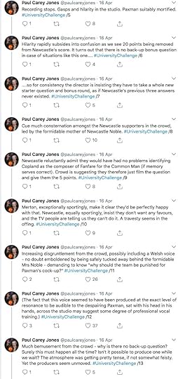 But worse - much worse - was the gaffe revealed tonight on Twitter that caused a furore during the University Challenge semi-final between Newcastle and Merton, Oxford.