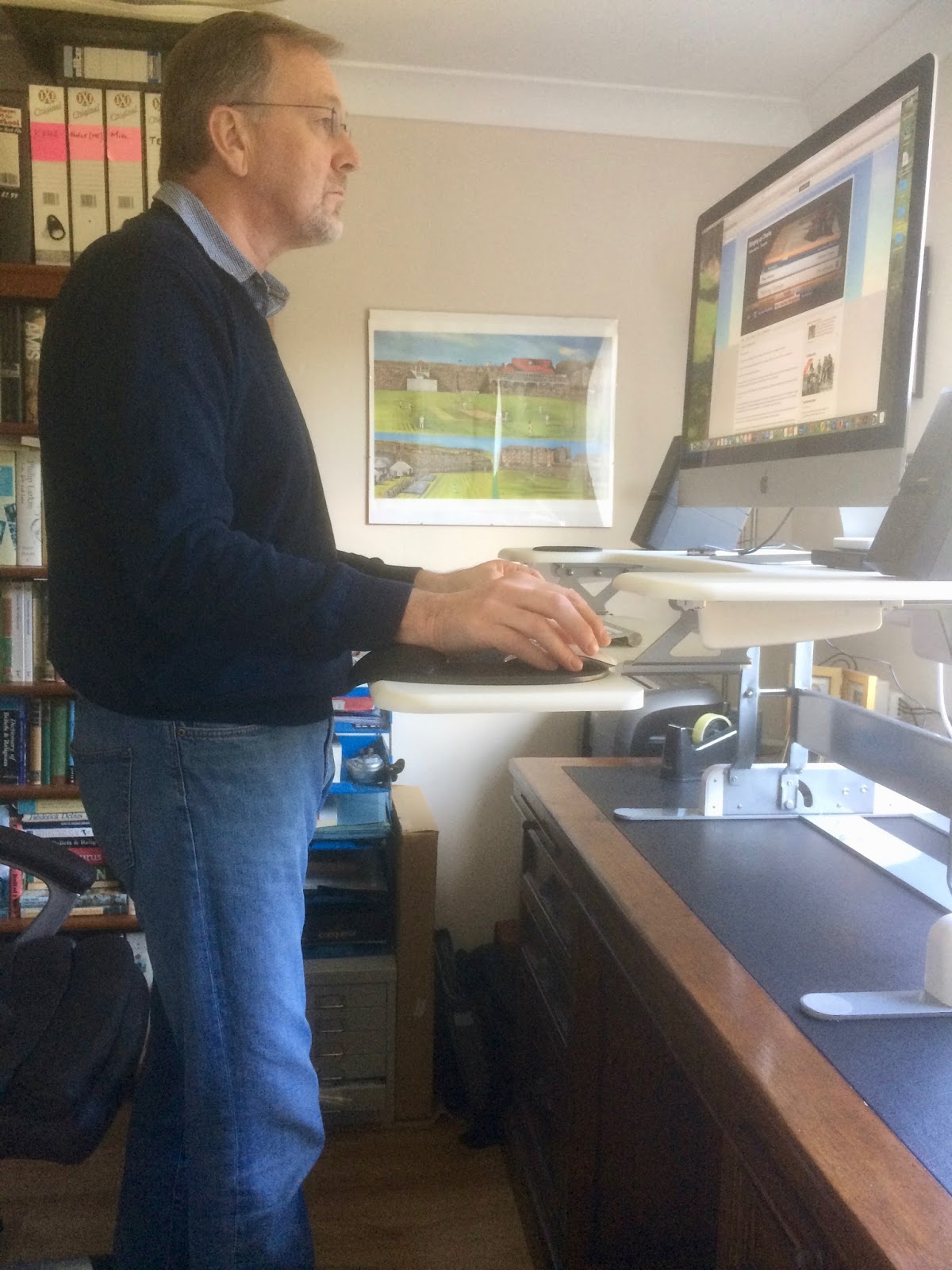 But it's also a pain in the neck. Or the back. Or both. And sitting (so the experts say) is bad for you anyway. We're always being told to get up and walk around. Which is tricky when you're in the middle of writing 90,000 words on the post-WW1 battlefield clearances. Or even 900 words on Britain's Brexit battles.