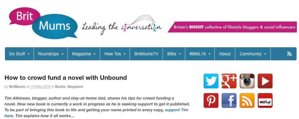 Meanwhile, I'll see you across at the Brit Mums blog where I'm discussing the whole business of writing and crowdfunding in the context of modern publishing.