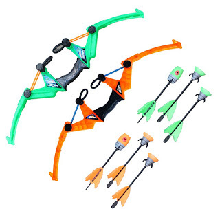 Get the next big thing in bow technology with the Z-Tek Bow. Check out the sleek new design and shape. Shorter bungees for faster firing. Arrow clips right on the bow for quick reloads and a powerful presence. It’s an all new archery experience with the Z-Tek Bow! Hook in the Zartz™ Arrow or Zonic™ Whistling Arrow, position the shot, and watch it fly through the air for an incredible 100 feet! Includes a Z-Tek Bow, two Zonic™ Whistling Arrows and one Suction-Cup Zartz™ Arrow.