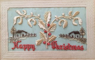 Until then, there are his medals, as well as wonderful, fragile embroidered postcards sent back from the Front, and photos of the cemetery and of his grave.
