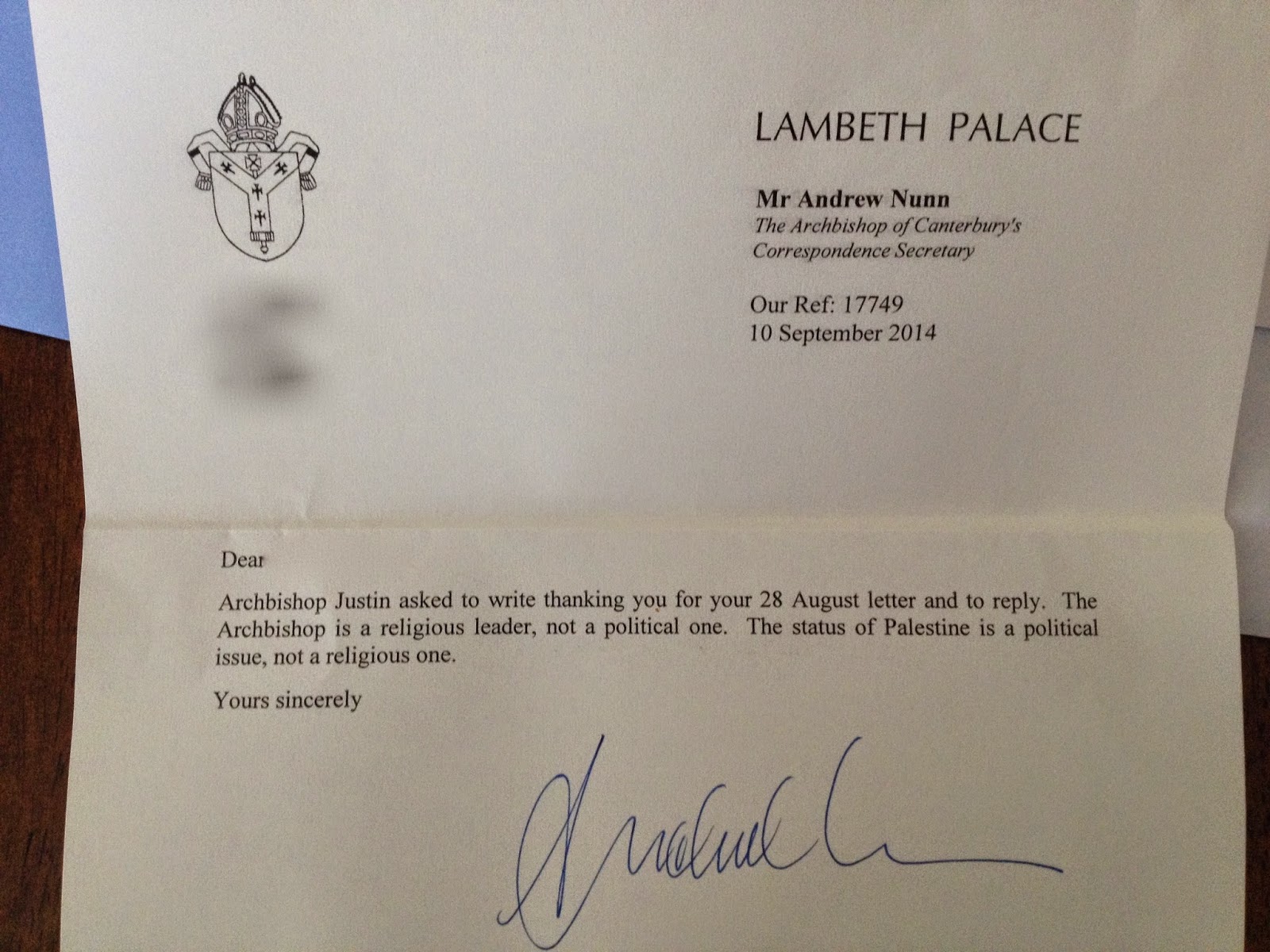 And remember, if you're a Palestinian, write to this man, not me...