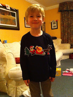 Well, with Little Punk London ('the first and only children's stick on and play designer t-shirts... hours of fun, beautiful to wear' as they themselves put it) such things don't matter. Because once Christmas was over Charlie was able merely to peel off the velcro decorations and create an entirely new look! Something he can do again and again.