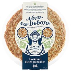 Produced in the Netherlands by De Bioderij (Holland’s number one producer of ready-made pancakes) and made with natural ingredients to a traditional recipe, they come with handy little menu hints on the packet, like: 'How's this for a flippin' quick supper? Just fill with pesto and mozzarella, pop in the microwave and... Abra-ca-Debora! A pan-tastic supper in no time.'