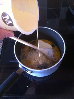 Anyway, as it's British Egg Week I thought I'd share what I had for breakfast today - eggs, scrambled. And my recipe (which isn't in the book) is simple: two eggs, a little melted butter, some grated parmesan and a swirl of cream...