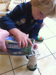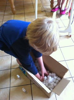 No, not another cardboard box. We're not making things again. (See yesterday's post for things to do with cardboard cartons.) No, for once it was what was in the box that was more exciting than the box itself - a bird feeder.