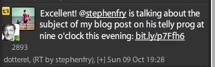 Thanks Mr Fry. Oh and if you ever fancy re-tweeting this link anytime, I'd be very grateful: